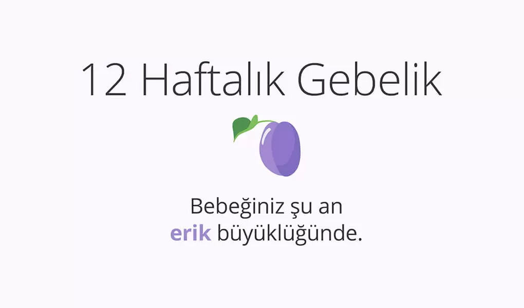 12 haftalık gebelik, bebeğin hızla gelişimini sürdürdüğü, hormonların ve bebeğin gelişimine bağlı olarak anne adayında da pek çok farklılığın oluştuğu dönemdir. Bebeğin reflekslerinin gelişmeye başladığı bu dönemin sonunda bebek, emme refleksine bağlı olarak el ve ayak parmaklarını emmeye başlar. İdrar kesesinin gelişimi ile birlikte bebeğin idrarı artık mesanede toplanmaya başlar. Bebeğin başının her iki yanında yer alan gözleri, yüzün orta kısmına yerleşir ve kulakları da olması gereken yerde gelişmeye devam eder. Bebeğin yüz gelişimini tamamlanması ile birlikte 12 haftalık bebek görüntüsü, tam bir insan görünümüne sahip olur. Bebeğin kalp atışları da bu haftada doppler ultrason ile dinlenebilir.