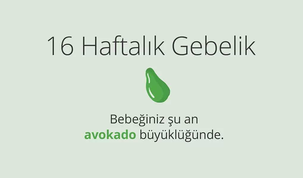 İkinci trimesterde yer alan 16. hafta, genellikle ilk 3 ayda yaşanan mide bulantısı, kusma ve baş dönmesi gibi sorunların tamamen ortadan kalktığı, hamileliğin keyifli zamanlarının başladığı bir haftadır. Farklı bir deyişle 16 haftalık hamilelik annenin gebelik sürecine adapte olmuş ve alışma sürecinde yaşadığı sorunları geride bırakmış olduğu bir döneme denk gelir. Bu haftadan itibaren büyüyen bebekle birlikte annenin karnı da iyice belirginleşmeye başlar. 16 haftalık bebek yaklaşık olarak bir avokado büyüklüğüne ulaşmış olup ortalama 80-150 gramlık bir kütleye sahiptir. Bebeğinin hafta hafta büyüme ve gelişimi konusunda araştırmalar yapan anneler için bir önceki haftaya göre kütlesindeki önemli artış gözden kaçırılamayacak düzeydedir. Bu haftada bebeğin dokunma duyusuna verdiği tepkiler belirginleşir, ultrason muayenesi esnasında annenin karnına dokunuldukça bebeğin verdiği tepkiler gözlemlenebilir.