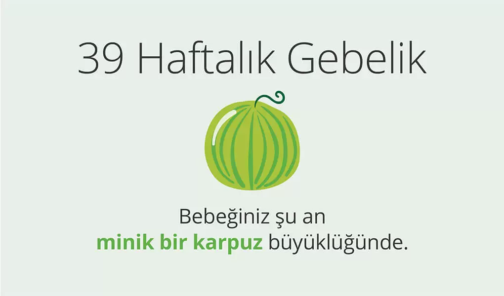 Gebelikte 39 hafta, bebeğin beyin gelişiminin hız kazandığı dönemdir. Doğumun her an yaşanabileceği bu hafta içinde bebek, anne karnından çıktığında dış dünyaya uyum sağlayabilmek, vücut ısısını dengeleyebilmek ve üşümemek için bolca yağ depolamaya devam eder. Yaklaşık olarak bir karpuz büyüklüğüne ulaşan bebeğin, anne karnında hareket edeceği pek fazla alan kalmadığı için hareketleri kısıtlanmış durumdadır. Bu yüzden anne adayları gebelikte 39 hafta içinde bebeğin eskisi kadar hareketli olmadığını düşünebilir. Kasları güçlenen bebeğin hareketleri nadiren hissedilse de yaptığı hareketler, anne karnının dışından görülebilecek düzeydedir. Bu dönemde anne adayı, genellikle kendisini yorgun hisseder. Aşırı duygusallaşan anne adayı, 39 haftalık gebelik kontrolüne gittiğinde bebeğinin baş aşağı duruş pozisyonu ya da farklı bir deyişle doğum pozisyonunda olduğunu görebilir. Bebeğin doğum pozisyonu almasına bağlı olarak rahatlayan mide ve akciğerler sayesinde, annenin nefes açlığı hissi ve sindirim sistemi problemleri ortadan kalkar. Ancak bebeğin kafasının, annenin pelvis kemikleri arasında bulunmasına bağlı olarak idrar torbası sıkışır. Bu da anne adayının idrara çıkma ihtiyacının sıklaşmasına yol açar. Anne adayı bazı gecelerde tuvalete gitmekten uyku uyuyamaz hale gelebilir. Bu durumda su tüketimi kesinlikle azaltılmamalı, bunun yerine günlük su tüketiminin büyük bölümü gün içine yayılmalı, yatmaya yakın saatlerde su tüketimi sınırlandırılmalıdır. 39. haftada doğum yapanlar, bebekleri dış dünyaya adapte olabilecek kadar geliştiğinden, onu rahatlıkla kucaklarına alabilir.